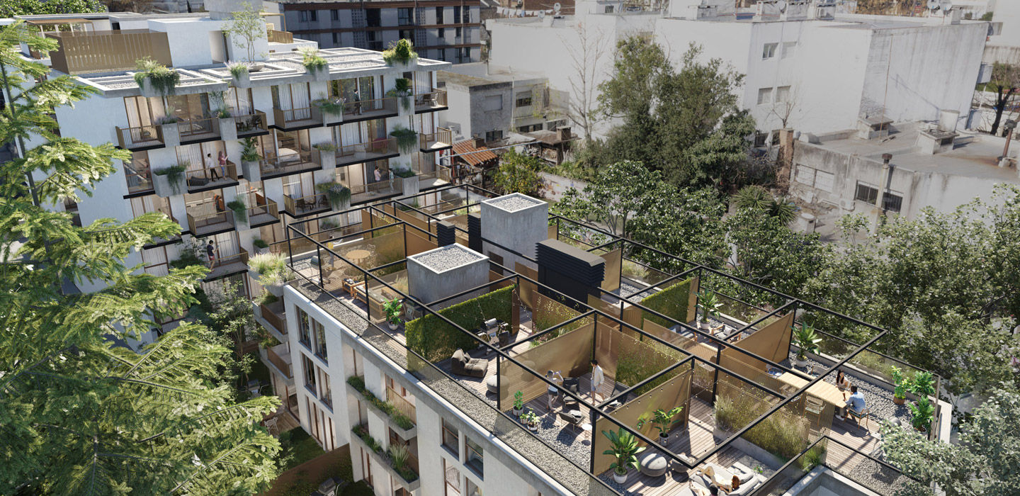Located in the Parque Batlle neighborhood, 01 Vila is a residential project comprising two six-story blocks and one three-story block, brought together in a contemporary ensemble that responds sensitively to its urban context. The building includes a basement level with parking spaces and bike parking. Its design features planters integrated into the façades, adding a natural element that reinforces its connection with the surrounding environment.