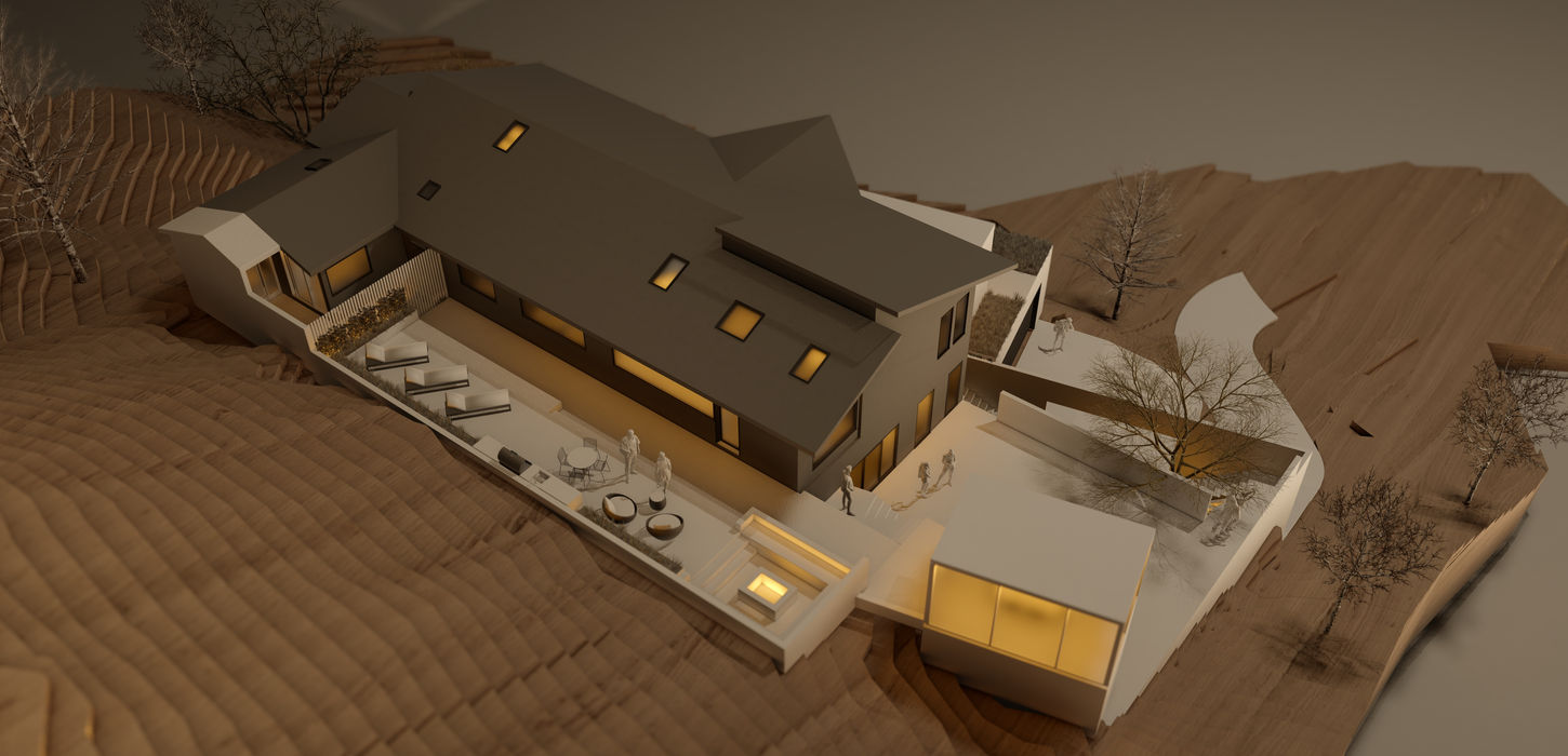 At MAG, we supported the preliminary design phase, developing architectural solutions that respected the natural environment and the existing architectural language, aiming for a balance between functionality, structure, and material expression.